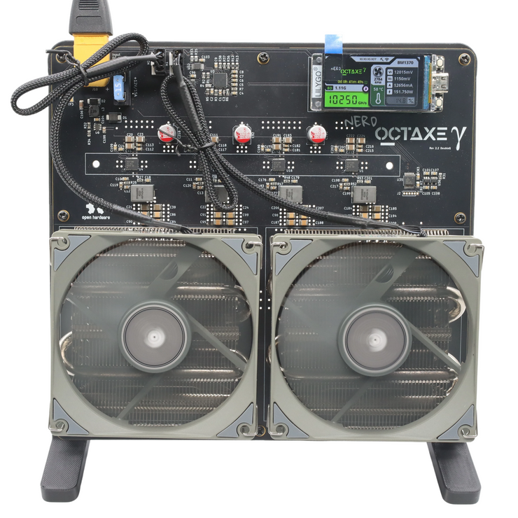 Key Features: Hash Power and Efficiency The NerdOCTAxe merges high performance with efficiency, delivering a remarkable hash rate of approximately 9.6 TH/s. Its use of the latest BM1370 chip technology ensures that users maximize their Bitcoin mining returns while minimizing energy costs. Display and User Interface Equipped with a LILYGO T-Display S3, the NerdQaxe++ features a vibrant 1.9-inch LCD color screen that includes two programmable buttons. This intuitive interface allows users to effortlessly monitor crucial parameters such as hash rate, Bitcoin prices, ASIC temperatures, and overall power usage, ensuring a seamless mining experience. Software Integration The device operates on the efficient AxeOS panel, enabling users to monitor an entire network of devices (or ‘swarm’) powered by AxeOS, including all Bitaxe miners, from a single interface. Cooling Solutions NerdOctAxe adheres to standard mounting patterns for Intel and AMD processors, enhancing compatibility. It comes with a Thermalright AXP90 X36 Low Profile cooler for effective thermal management, while also leaving room for custom modifications to suit various cooling preferences. Key Differences: NerdOCTaxe+ vs. Bitaxe While Bitaxe integrates a color OLED display and features an ESP32 chip, the NerdOctaxe and its predecessors, Nerdaxe and Nerdminer, leverage the Lilygo T-Display-S3 LCD display, which incorporates a built-in ESP32 chip for enhanced functionality. |